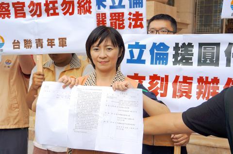 Taiwan Solidarity Union (TSU) Legislator Chou Ni-an (周倪安) yesterday filed a lawsuit against Chinese Nationalist Party (KMT) Chairman Eric Chu (朱立倫) and Secretary-General Lee Shih-chuan (李四川) for “making arrangements under the table” to replace KMT presidential candidate Hung Hsiu-chu (洪秀柱).