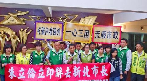 The DPP’s New Taipei City council caucus demanded Chu resign and apologize over his previous promise that he would stay the full term as mayor.