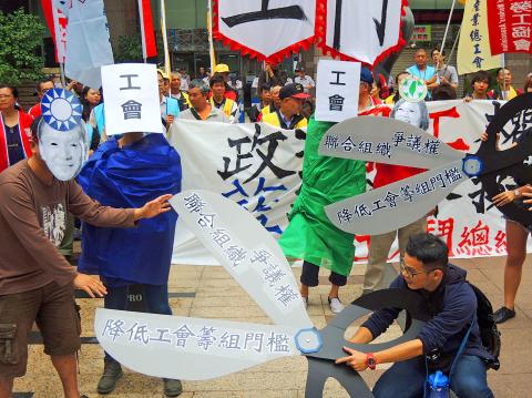 The Ministry of Labor said it would consider lowering the 30-employee threshold as part of revisions to the Labor Union Act (工會法), while rejecting the possibility of allowing general strikes.