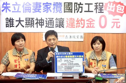 TSU caucus convener Lai Chen-chang (賴振昌) told a press conference that Vtron owner Kao Yu-jen (高育仁), Chu’s father-in-law, won a ministry contract in 2013 to manufacture key components for the Tien Chien II (TC-2), a medium-range air-to-air missile, by tendering a bid that was 35 percent below the minimum and failed to deliver.