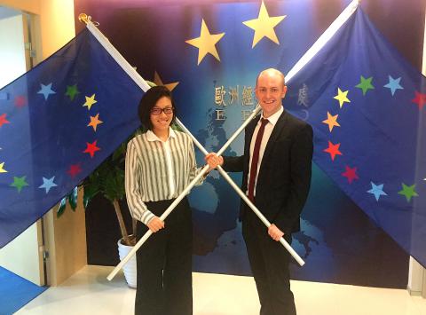 Officials from the European Economic and Trade Office are to attend the gay pride parade in Taipei today, handing out EU flags, of which the golden stars have been replaced with rainbow colors in a gesture of support to the gay community.