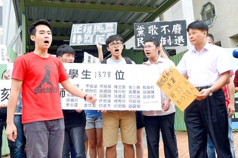 National Chengchi University (NCCU) student group the “Wild Fire Alliance” on Friday handed in 1,378 signatures to school authorities, asking the university to abolish its anthem, which they said contained “party-state ideology.”