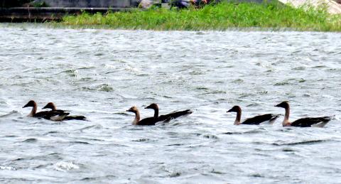 Six geese believed to belong to the “bean goose” winter migrant species yesterday made an unexpected appearance near the Chenggong Reservoir on the outlying island of Penghu, birdwatchers from the Wild Bird Society of Penghu said.