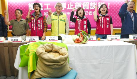 “Our salaries are already low and work hours long enough — how can the government keep harming us, even forcing us to eat contaminated food if the agricultural market is opened up?” alliance legislator-at-large candidate Chang Li-fun (張麗芬) said, adding that President Ma Ying-jeou’s (馬英九) administration is pushing forward negotiations on the agreement prior to the passage of supervisory regulations by the Legislative Yuan.