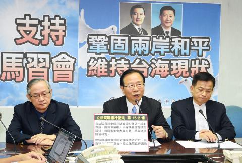 In response to questions over the timing of the meeting’s announcement, Lai said: “It is Wednesday today and Ma is visiting Singapore on Saturday, which means that the Executive Yuan reported to Legislative Speaker Wang Jin-pyng (王金平) and the Mainland Affairs Council spoke to the caucuses three days ahead of Ma’s trip.”