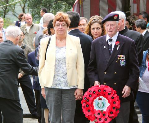 Canadian Trade Office in Taipei executive director Mario Ste-Marie, World Veterans Federation vice president Kao Chung-yuan (高仲源) and representatives from Australia, Britain, New Zealand and Taiwan also attended yesterday’s commemoration ceremony.