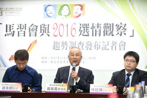 “The Ma-Xi meeting was the first time the leaders of Taiwan and China met,” Taiwan Brain Trust executive director Lee Ming-chun (李明峻) told a news conference. “The KMT’s approval rating dropped after the meeting, especially among pan-blue supporters, which went from 49.3 percent [in September] to 47 percent this time, showing that there are still anti-Communist pan-blue supporters who are disappointed by the Ma-Xi meeting.”