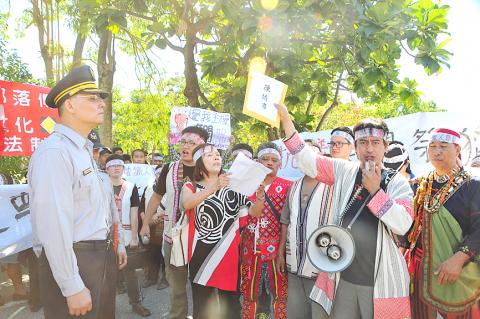 Dowmung Tribal Council Chairman Masaw (鍾德光), who was one of the hunters arrested last month, said the protesters demand that police respect their right to hunt and call on the government to abolish special jurisdiction and police checkpoints in restricted mountain areas, which he called “toxic residue from the Martial Law era.”
