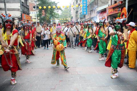 Thousands of religious devotees flocked to Qingshan Temple (青山宮) in Taipei’s Wanhua District (萬華) this week to join in the nightly patrols and parades celebrating the birthday of the deity Qingshanwang (青山王; Green Mountain King), which was yesterday.