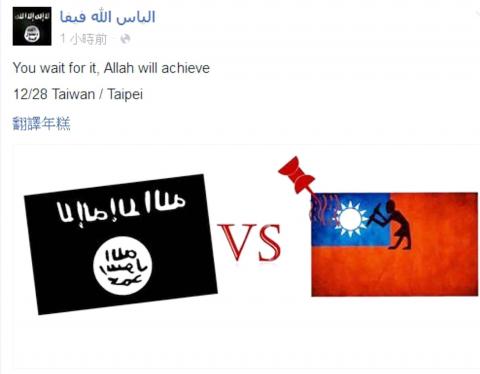 The ministry said they reached the conclusion that the threat was not genuine one day after a Facebook user, identified as “Elias Allah Fifa,” posted a picture on the Anonymous Asia Facebook page, with the message: “You wait for it, Allah will achieve 12/28 Taiwan/Taipei.”