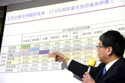 As to potential changes in voting preferences by political party, a cross-analysis found that 17.6 percent of respondents who voted for a KMT candidate in 2012 would support a DPP one next month, the group said.