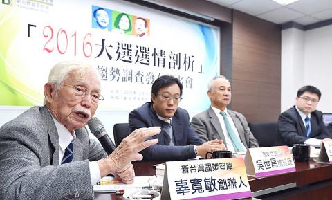 The think tank also did a cross-analysis on how people voted in 2012 and how they would vote in the Jan. 16 presidential election. It showed that among voters who cast their ballots in favor of Ma and Vice President Wu Den-yih (吳敦義) in 2012, 25.9 percent would vote for Tsai this time and 18.8 percent for Soong.