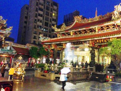 Once a year, a line of more than 1,000 plastic stools and deck chairs forms outside Longshan Temple (龍山寺) in Taipei’s oldest district, Wanhua (萬華), to mark the place of people eager to have a lamp lit on their behalf at the start of a new lunar year.