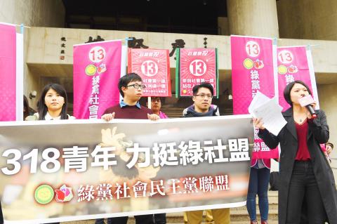 Sunflower movement leader Dennis Wei (魏揚) yesterday endorsed the Green Party-Social Democratic Party Alliance, in the party’s latest move to compete with the New Power Party (NPP) to serve as the movement’s standard bearer in next Saturday’s elections.