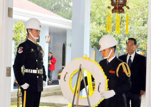 People First Party presidential candidate James Soong (宋楚瑜) yesterday visited former president Chiang Ching-kuo’s (蔣經國) mausoleum in Taoyuan’s Touliao (頭寮) to mark the 28th anniversary of Chiang’s death tomorrow.