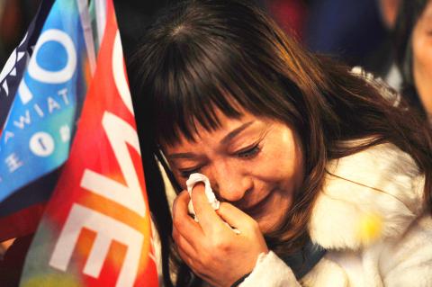 As Tsai’s lead hit nearly 1.5 million votes at 5:30pm, Chu’s campaign spokesmen, Lee Cheng-hao (李正皓) and Hsu Chiao-hsin (徐巧芯), attempted to lift the spirits of the crowd.