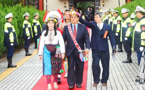 NPP legislators Hsu Yung-ming (徐永明), Kawlo Iyun Pacidal and Hung Tzu-yung (洪慈庸) appeared with their families, with Hung saying: “Legislative reform and transparency are our top priorities.”