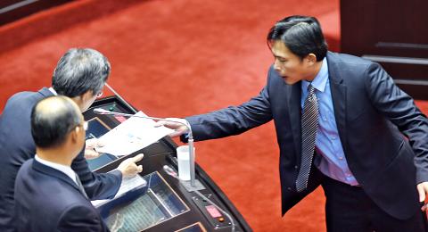 New Power Party (NPP) Legislator Huang Kuo-chang (黃國昌) yesterday, on his debut in the legislature, challenged the Minister of Economic Affairs over nuclear waste storage and disposal, and elicited a heated response from the Minister of Labor on the issue of unpaid leave.