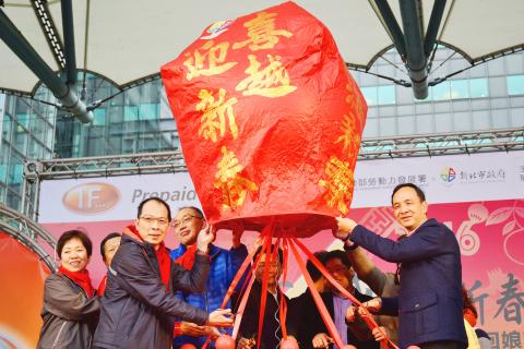 In addition to about 200 party members and supporters, the event was attended by two party chairperson hopefuls, acting KMT chairperson Huang Min-hui (黃敏惠) and former legislative speaker Hung Hsiu-chu (洪秀柱).