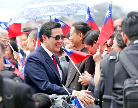 President Ma Ying-jeou (馬英九) on Sunday was warmly welcomed by US officials during a visit to a Taiwanese ethylene manufacturing plant in Point Comfort, Texas, during a stopover in Houston en route to Guatemala as part of his last overseas diplomatic trip before his term ends in May.