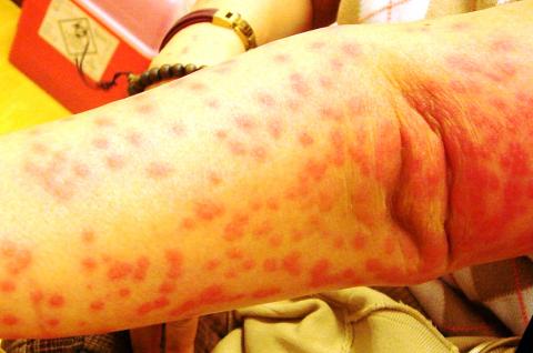 A Taipei woman who keeps a garden on the patio of her building was diagnosed with caterpillar dermatitis after seeking medical help due to the rashes on her arms accompanied by severe itching.