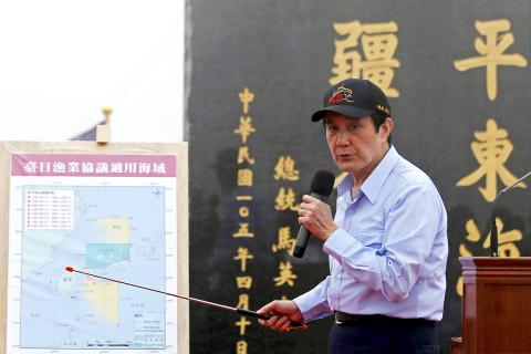 It came four years after Ma last visited Pengjia to propose his East China Sea peace initiative, aimed at addressing territorial disputes between Taiwan, China and Japan over the nearby Diaoyutai Islands (釣魚台), known as the Senkakus in Japan.