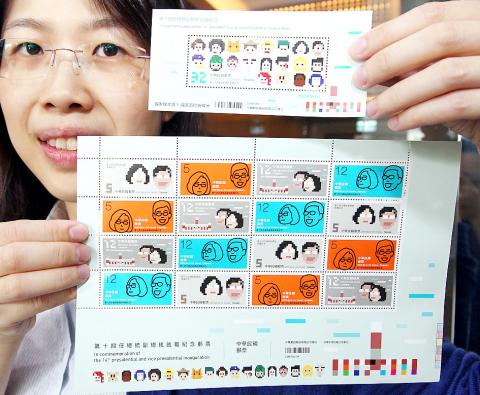 In one of the stamps, images of Tsai and Chen are placed alongside those of people from different walks of life and ethnic groups in Taiwan.
