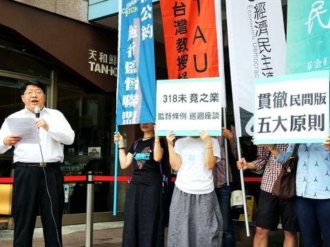 Forums announced yesterday are to target DPP members of the Legislative Yuan’s Internal Administration Committee — which is responsible for the supervisory bill’s initial review — demanding that legislators pass amendments to the legislation to reflect their demands.