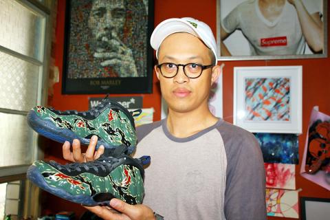 A graphic designer from Nantou County said that he is regularly commissioned to inscribe images of former Chicago Bulls basketball player and sporting legend Michael Jordan onto his clients’ Air Jordan sneakers.