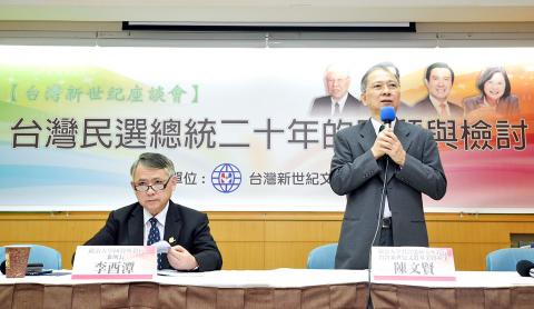 Speaking at the foundation’s seminar titled “A Review and Reflection on the Two Decades of Taiwan’s Democratically Elected Presidents,” National Chengchi University professor Lee Yeau-tarn (李酉潭) yesterday said direct presidential elections have prevented cross-strait relations from being a solely KMT-to-Chinese Communist Party issue.