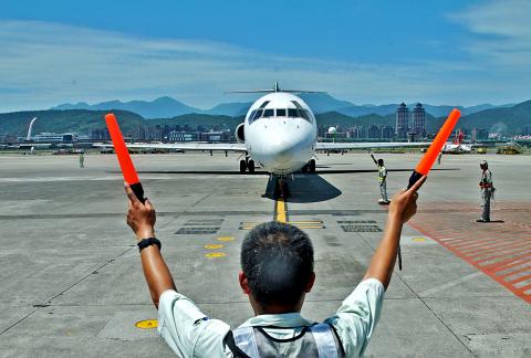 The company held a ceremony yesterday afternoon at Taipei International Airport (Songshan airport) in honor of the MD-90’s two decades in service, which was attended by UNI Air chief executive vice president Chen Shyong-jyh (陳雄智), as well as Civil Aeronautics Administration officials and other government agencies. They greeted the arrival of the MD-90 aircraft, which had just made the trip from Kinmen to Taipei.