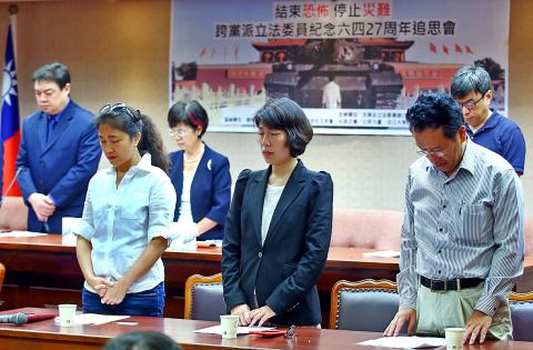 Organized by the Parliamentary Cross-Party Group on International Human Rights, Democratic Progressive Party (DPP) Legislator Yu Mei-nu’s (尤美女) office, the Taiwan Association for China Human Rights (TACHR) and Friends of Liu Xiaobo (劉曉波), led by exiled Chinese dissident Wuer Kaixi, the event was held to call on the Chinese government, on the 27th anniversary of the June 4 massacre, to stop preventing its people from learning about the incident, to admit responsibility and apologize for its mistakes, and to hold those carried out the massacre accountable.