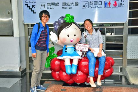 The train station in Changhua County’s Dacun Township (大村) has come alive with new installation art and decorations to let travelers know they are in the heart of the nation’s grape industry.