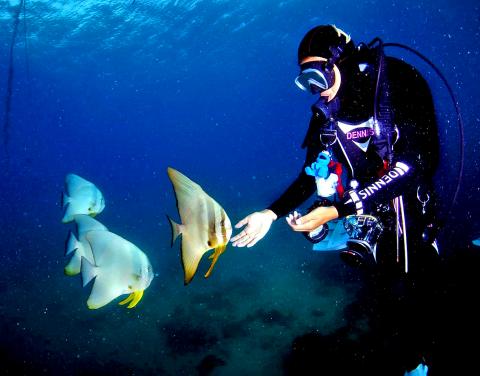 The appearance of the species in the area, featured on the National Museum of Marine Biology and Aquarium’s emblem, has excited local divers, who use bread to entice the fish to swim with them, said another diver, surnamed Lee (李).