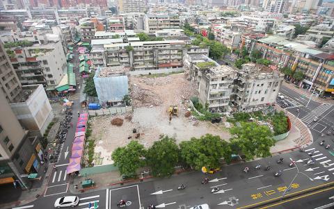 The demolition came one day after Wang Tong-kai (王東凱), the last holdout property owner, voiced objections to the project at a meeting of the city’s urban renewal and dispute arbitration committee.