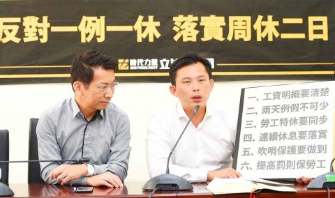 The proposal came after the Executive Yuan introduced the yili yixiu (一例一休) leave policy last week, which would enforce a five-day work week with one fixed day off and one flexible “rest day,” and which would give employers the ability to request that employees work on their rest day.