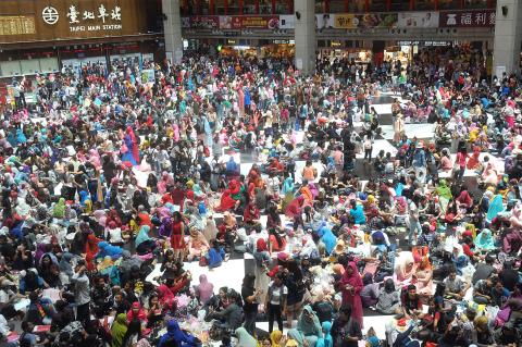 Thousands of Muslims, many of whom are workers from Indonesia, yesterday gathered at Taipei Railway Station for Eid al-Fitr, a celebration that marks the end of the holy month of Ramadan.