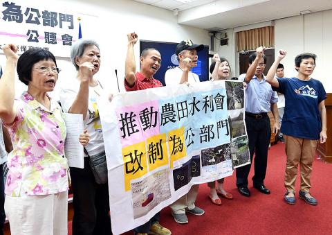 Irrigation associations have water rights over 70 percent of the nation’s farm water resources, but they can sell water and lease properties at their own discretion without being subject to government supervision, Taiwan Water Resources Protection Union spokesperson Chen Jiau-hua (陳椒華) said at a legislative hearing.