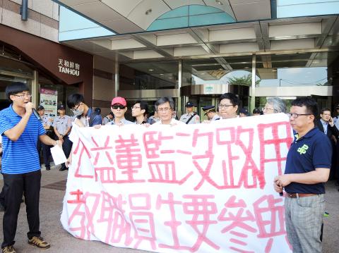 NFTU vice secretary-general Yu Jung-hui (尤榮輝) said that he does not trust the DPP’s draft, as it would grant the ministry complete authority over the vetting process for directors of public interest, compromising objectivity.
