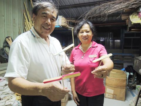 Company owner Chen Chien-hung (陳健宏) said he originally focused on making bamboo coasters for Japan, but he was unhappy with the amount of wasted bamboo shavings and decided branch out to making bamboo-copters from leftover materials.