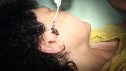 Department of Otolaryngology director Chang Yu-chien (張煜謙) said the hospital recently treated a 60-year-old woman, surnamed Lin (林), after a cockroach crawled into one of her ears.