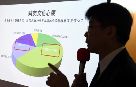 Despite the recent drop in Tsai’s recent approval ratings, the poll found that as much as 61 percent still have confidence in Tsai’s future performance, while 33.1 percent said they did not have faith in the president.