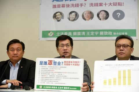 The DPP lawmakers called on Premier Lin Chuan (林全), who on Sunday ordered the FSC to form a committee to investigate the issue, to commission a third-party agency to direct the investigation and exclude the FSC, which they said might be involved in money laundering.