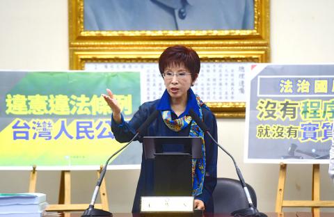 “The DPP said the act was based on Taiwan being a nation ruled by law and used East Germany as an example of how the party expected the act to handle the KMT’s assets, but it is only an attempt to cover up the unconstitutional clauses in the act,” she said.
