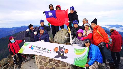 In a bid to evaluate the possibility of including the mountain in the Universiade’s torch relay route, committee CEO Su Li-chung (蘇麗瓊) led a delegation of committee members to Yushan’s main peak, the highest in the nation at 3,952m.