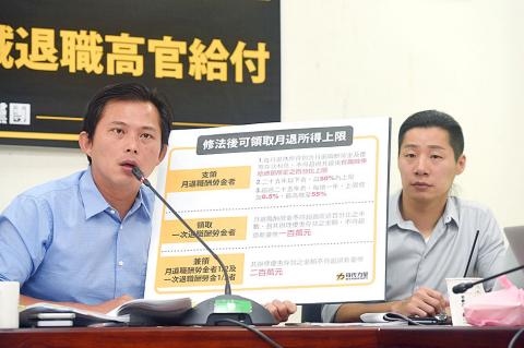 NPP Executive Chairman Huang Kuo-chang (黃國昌) said Article 13 of the act allows former government officials who retired before the act’s implementation in 2004 to continue receiving generous pensions stipulated by older rules.
