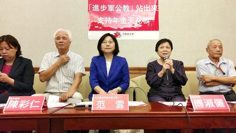 “We have to stand up to make people see that not all pensioners and employees are represented by [National Civil Servant Association president] Harry Lee (李來希) — there are a lot of other viewpoints,” said SDP policy committee convener Fan Yun (范雲), a professor at National Taiwan University.