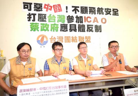 The Taiwan Solidarity Union (TSU) yesterday urged the government to take measures in response to China’s obstruction of Taiwan’s participation in this year’s International Civil Aviation Organization (ICAO) assembly in Canada, with the party calling on the government to openly denounce Beijing and reject the so-called “1992 consensus.”