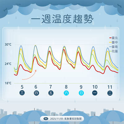 UNKNOWN TRAJECTORY: The storm could move in four possible directions, with the fourth option considered the most threatening to Taiwan, meteorologist Lin De-en said A soon-to-be-formed tropical storm east of the Philippines could begin affecting Taiwan on Wednesday next week, the Central Weather Administration (CWA) said yesterday. The storm, to be named Fung-wong (鳳凰), is forecast to approach Taiwan on Tuesday next week and could begin affecting the weather in Taiwan on Wednesday, CWA forecaster Huang En-hung (黃恩鴻) said, adding that its impact might be amplified by the combined effect with the northeast monsoon. As of 2pm yesterday, the system’s center was 2,800km southeast of Oluanbi (鵝鑾鼻). It was moving northwest at 18kph. Meteorologist Lin De-en (林得恩) on Facebook yesterday wrote that the would-be storm is surrounded by