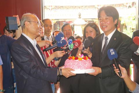After visiting seven temples in Taipei and one in New Taipei City’s Tamsui District (淡水) yesterday, Lai is scheduled to visit several more in New Taipei City today, including Jian Temple (濟安宮) in Shulin District (樹林).